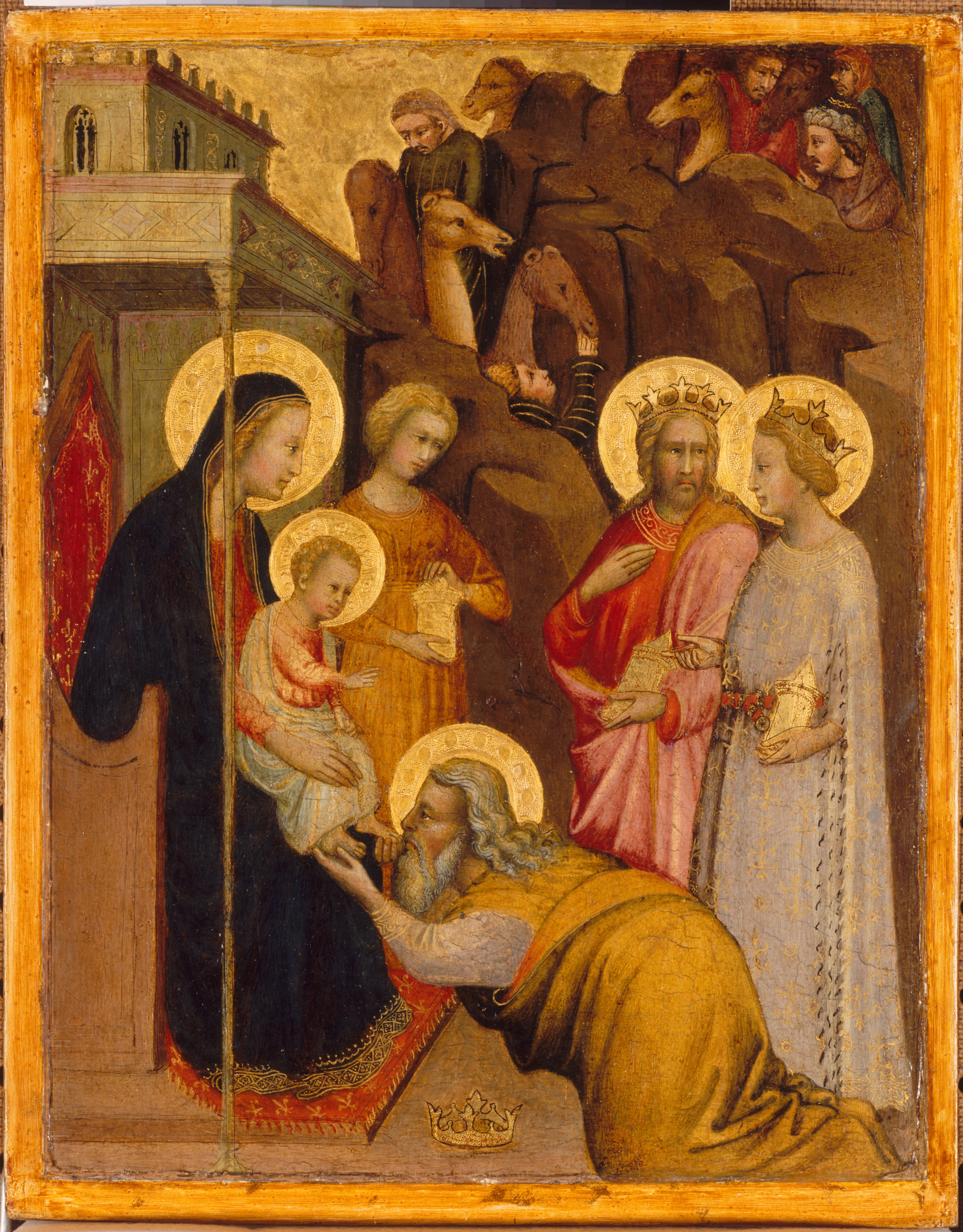 Master of the Strauss Madonna, The Adoration of the Magi (ca. 1400), tempera and gold on panel, Seattle Museum of Art.