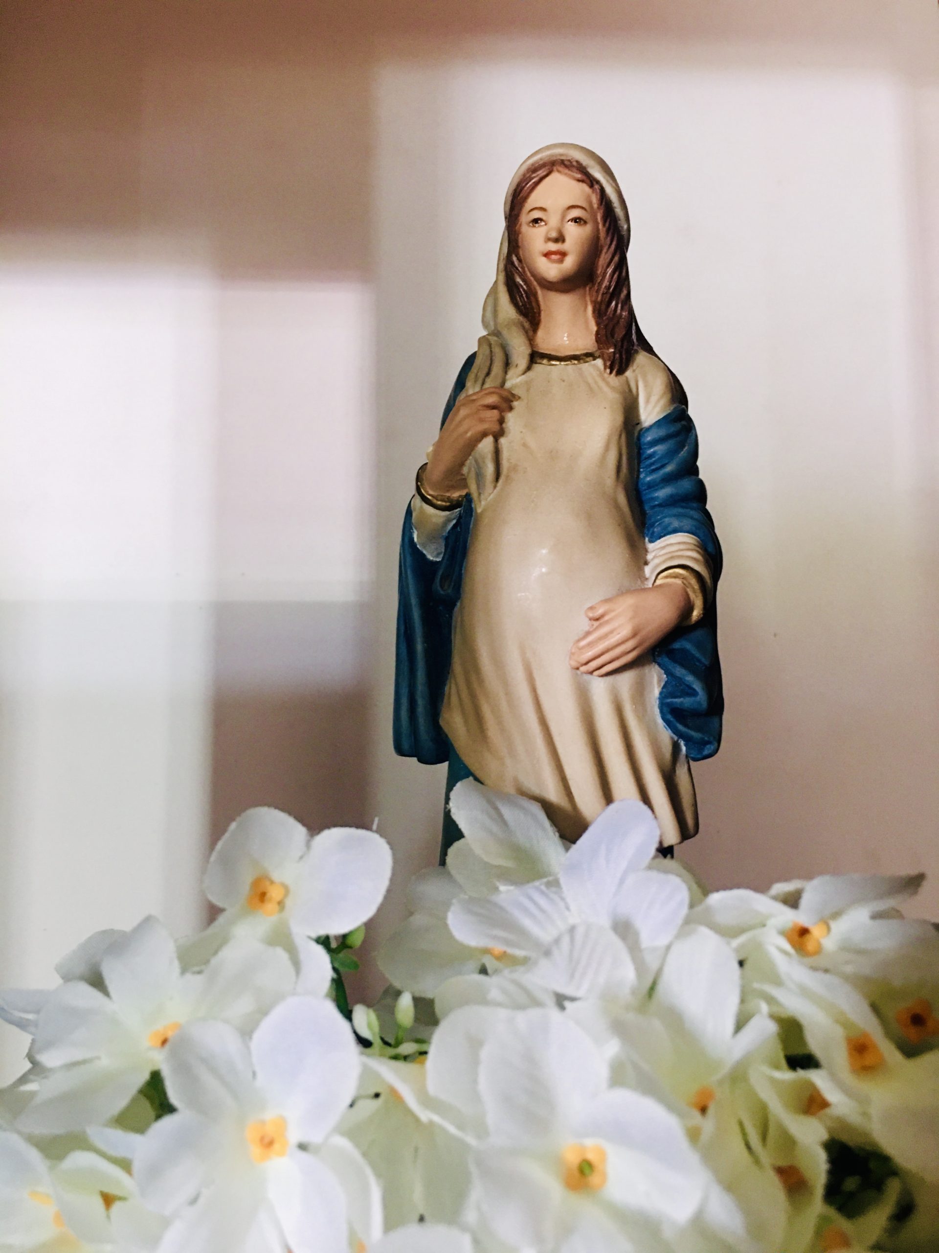 Mary was a Jewish girl and the perfect person to be the mother of God. She continually turned to the Lord, making God present not only physically, at Bethlehem, but spiritually wherever she was. To meet her would be to understand the quality of love the Lord was bringing to the world. The paintings and statues of Mary that I like best are those that depict her as a young mother, holding up her baby for him to bless the world. As a man, I can never fathom what it must be like to hold in your arms the child that lived inside you for nine months. What must have it been like for Mary to hold Jesus? Did she see herself? Did she see her family traits, her father’s eyes, her Uncle Solomon’s cleft chin? Did she see the baby’s Eternal Father, the First Person of the Trinity? Did Mary see in Jesus the Mercy of God, the Peace of God, the Compassion of God for his people, a people that struggled to get by in the darkness of a world that had rejected its Creator? How much did Mary love this child? Certainly, she loved him as much as every mother loves her child. But she must have loved him even more than this. She must have loved this child with, as the preface for Advent says, a love beyond all telling. She loved the child created within her, and she loved the Creator whom the child perfectly reflected. So, it is reasonable to depict Mary holding the child up for him to bless the world, to bless us.