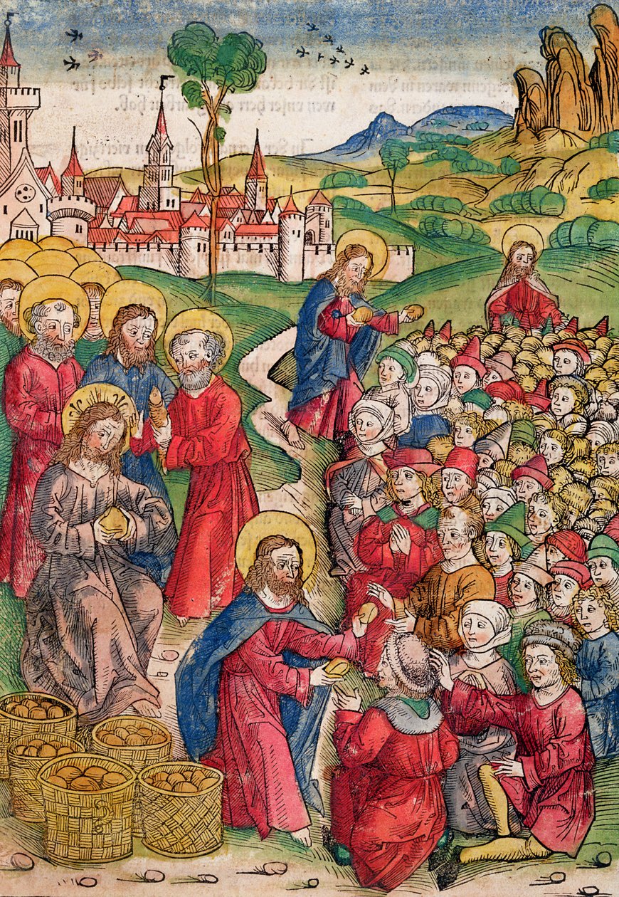 M. Wolgemut, La Multiplicación de los Panes y los Peces (1491), xilografía en color).